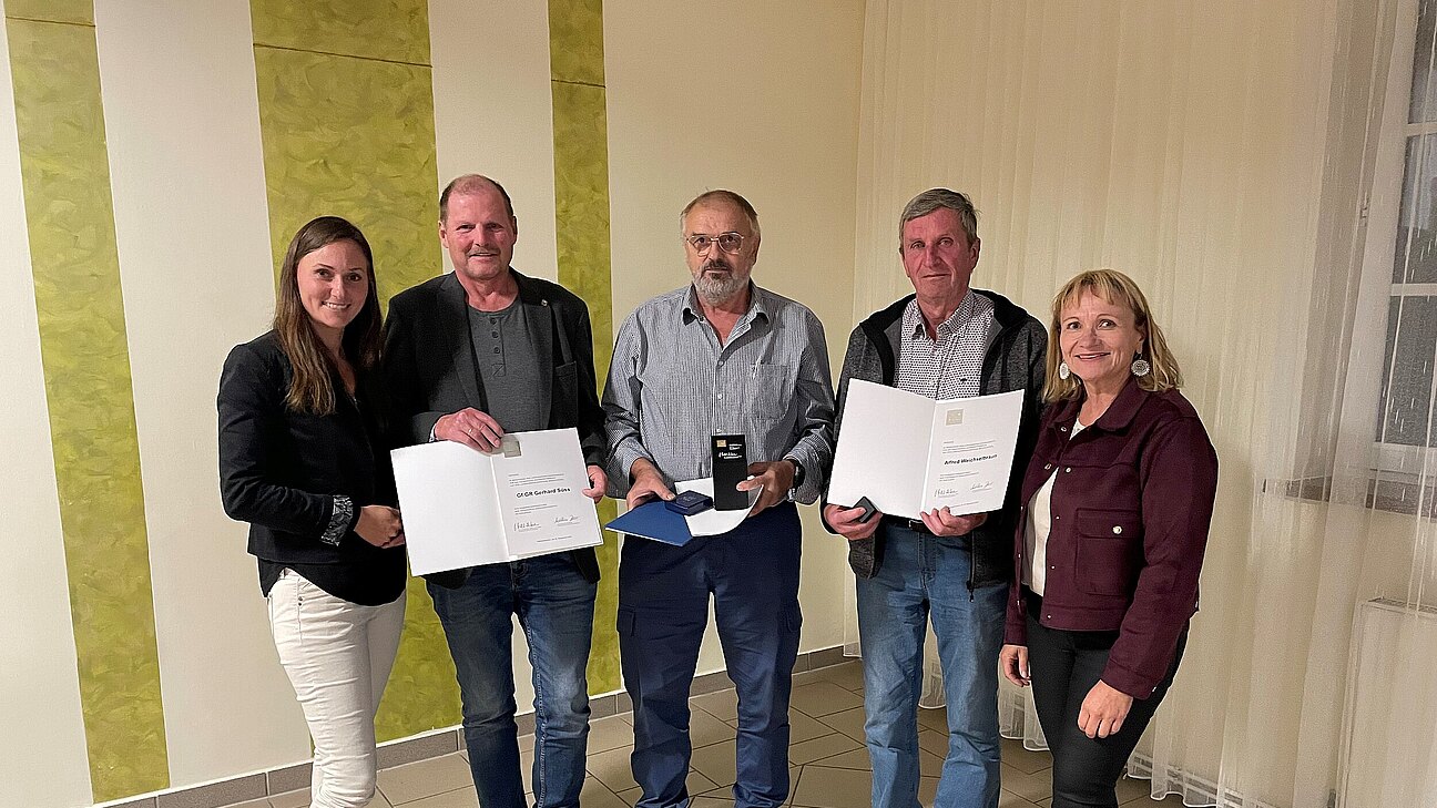 Im Anschluss überreichten Bundesrätin Viktoria Hutter und Anette Töpfl das goldene Ehrenzeichen der Volkspartei Niederösterreich für sein langjähriges Engagement an Josef Traxler aus Groß Rupprechts. Weiters überreichten sie das silberne Ehrenzeichen der Volkspartei Niederösterreich an Gerhard Süss und Alfred Weichselbraun.